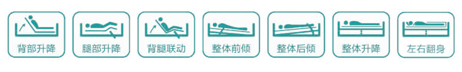 ○ 能隨意調(diào)整背部、腿部、床體升降、左右翻身。